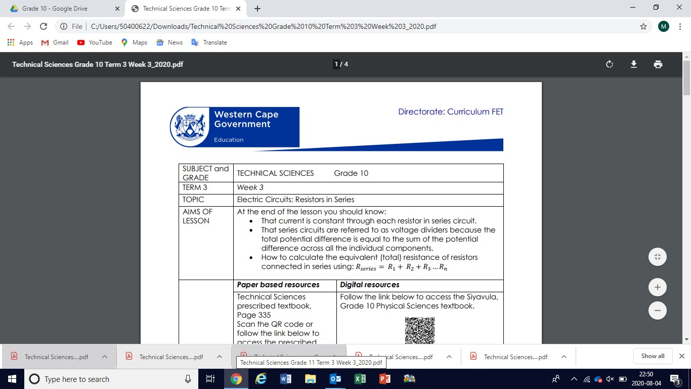 Technical Sciences Gr.10 T3 W3 Resistors in series.