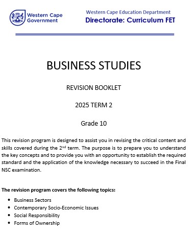 2025 Term 2 Grade 10 Business Studies Revision Resources