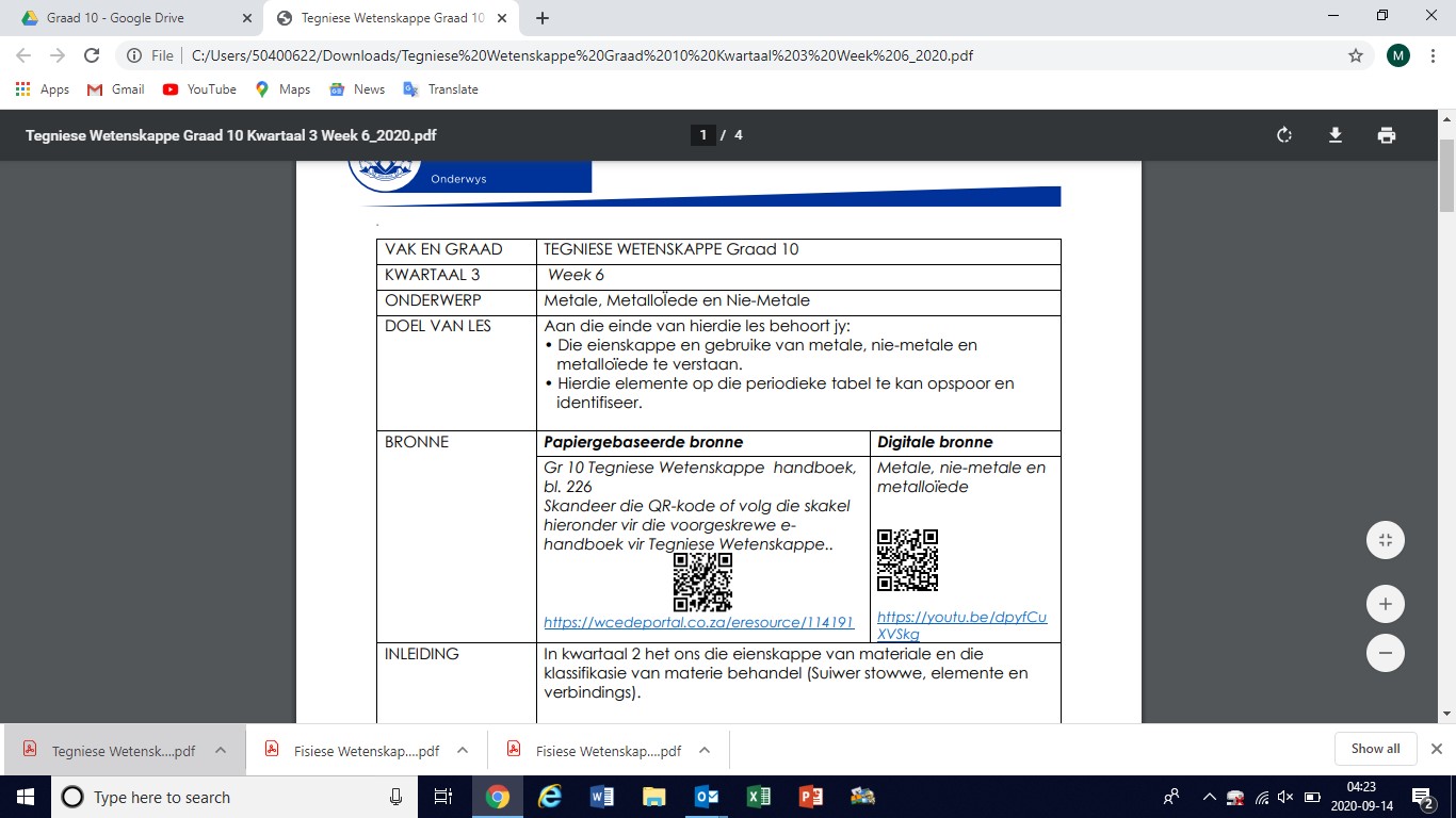Tegniese Wetenskappe Gr 10 K3 W6 Metale, metalloiede en nie-metale